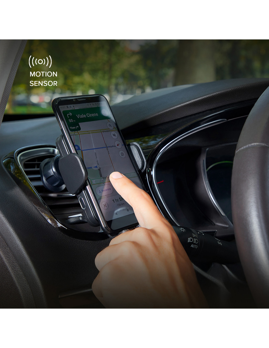 - - Automobilinis išmaniojo telefono laikiklis su belaidžiu įkrovikliu, skirtas oro išleidimo angai - juodas