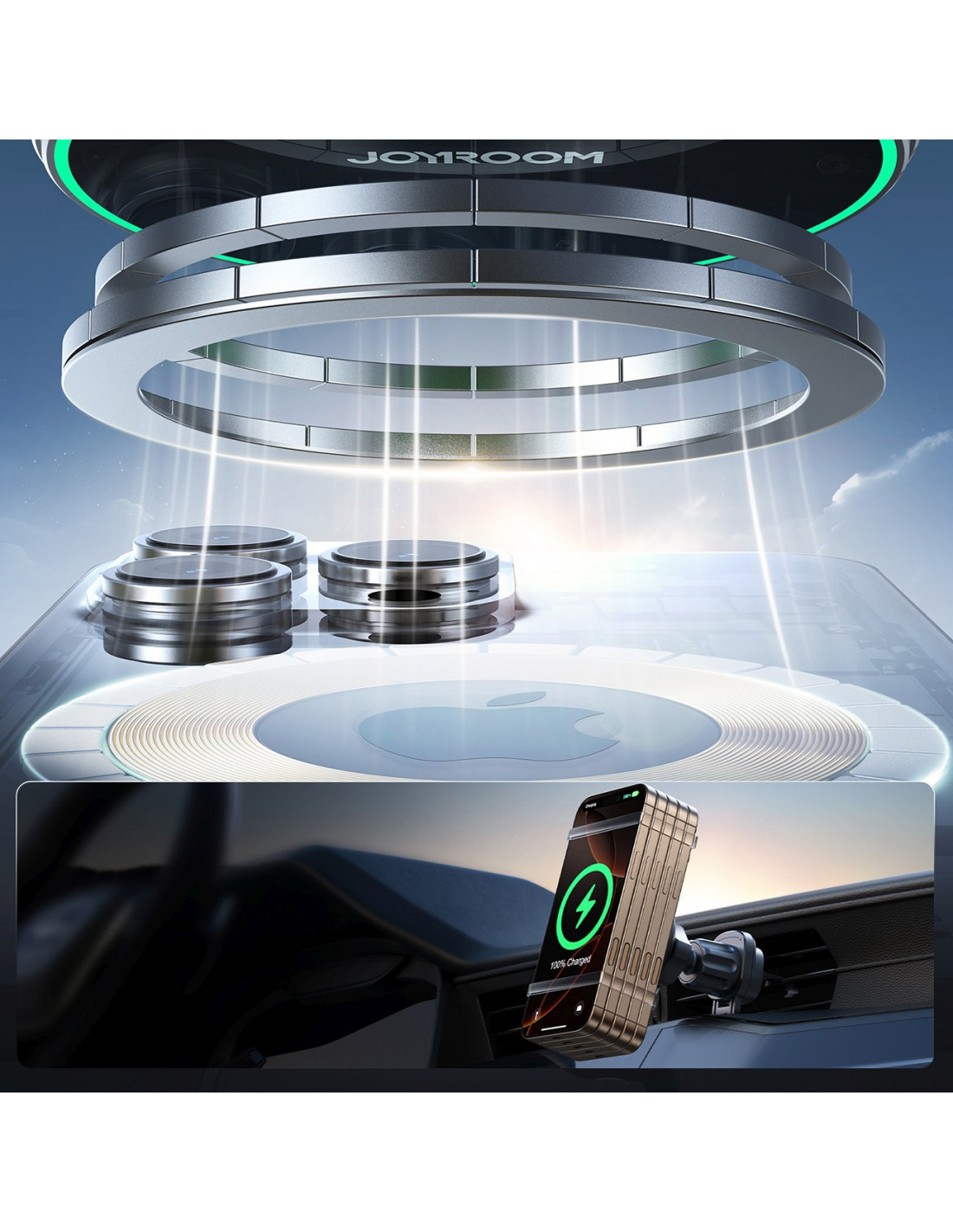 „Joyroom JR-ZS412“ automobilinis laikiklis yra daugiau nei tiesiog laikiklis – tai išmanus naudotojo patogumo ir „Qi2“ greito įkrovimo technologijos derinys. Integruoti N55 neodimio magnetai, pasižymintys didele laikymo galia, užtikrina saugų telefono sukibimą net ir nelygiuose keliuose. Valdymas viena ranka, visiškas 360 laipsnių sukimasis ir momentinis įkrovimas be laido leidžia patogiai ir saugiai naudoti telefoną automobilyje. Laikiklis suderinamas su naujausiais „iPhone“ ir telefonais su „MagSafe“ dėklais, o jo dizainas tinka beveik bet kokiai ventiliacijos angai. Taip pat pridedamas 60 W USB-C laidas, užtikrinantis optimalų įkrovimo efektyvumą. Tai puikus sprendimas vairuotojams, kurie vertina patikimumą ir modernias funkcijas.