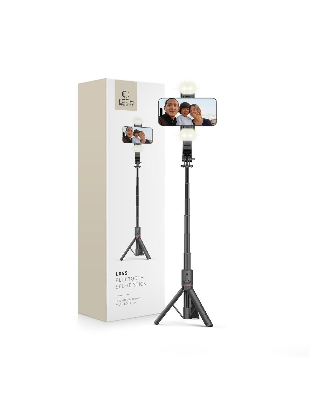 - - 1 x „Tech-Protect L05S“ „Bluetooth“ asmenukių lazda su trikoju ir LED lempute