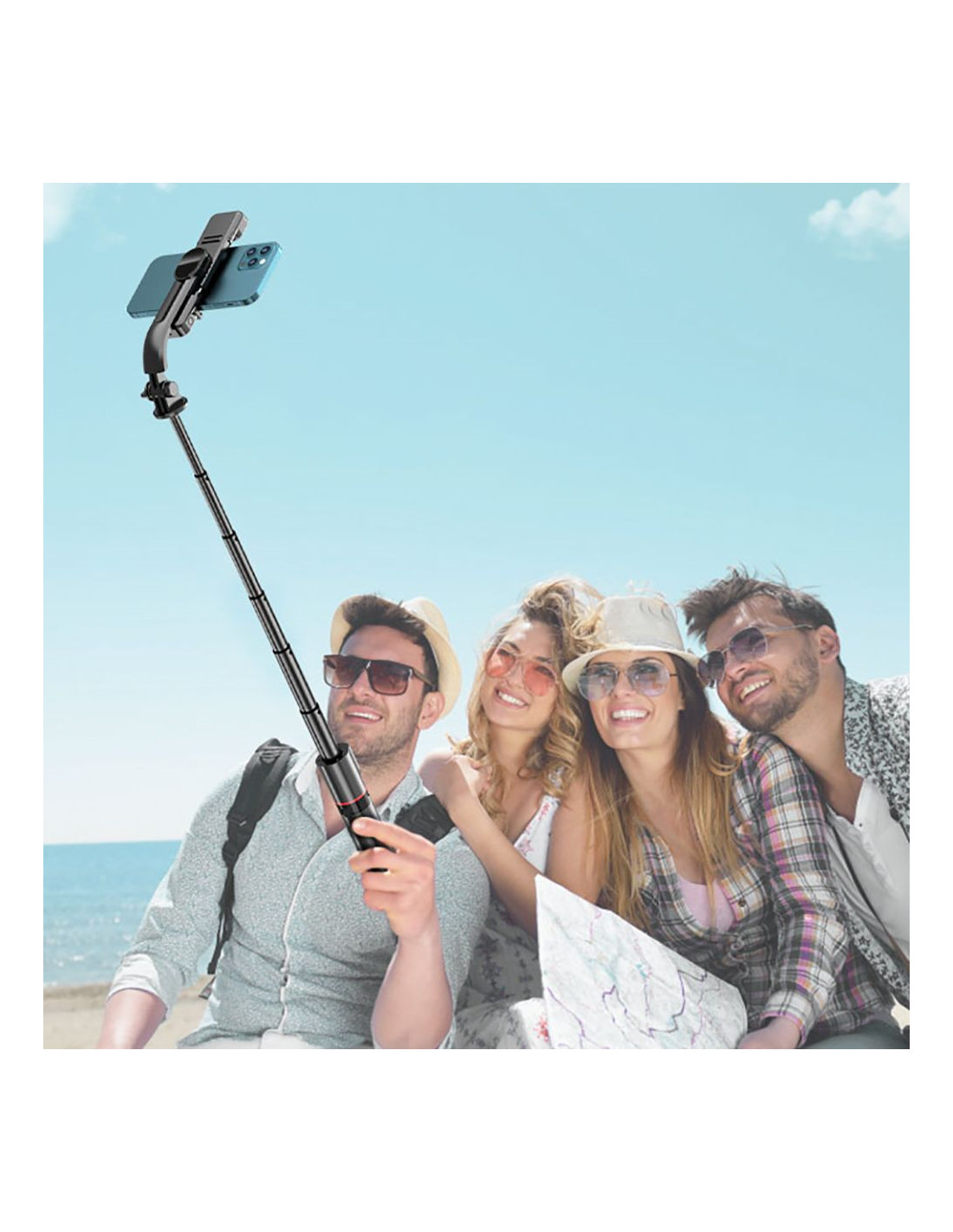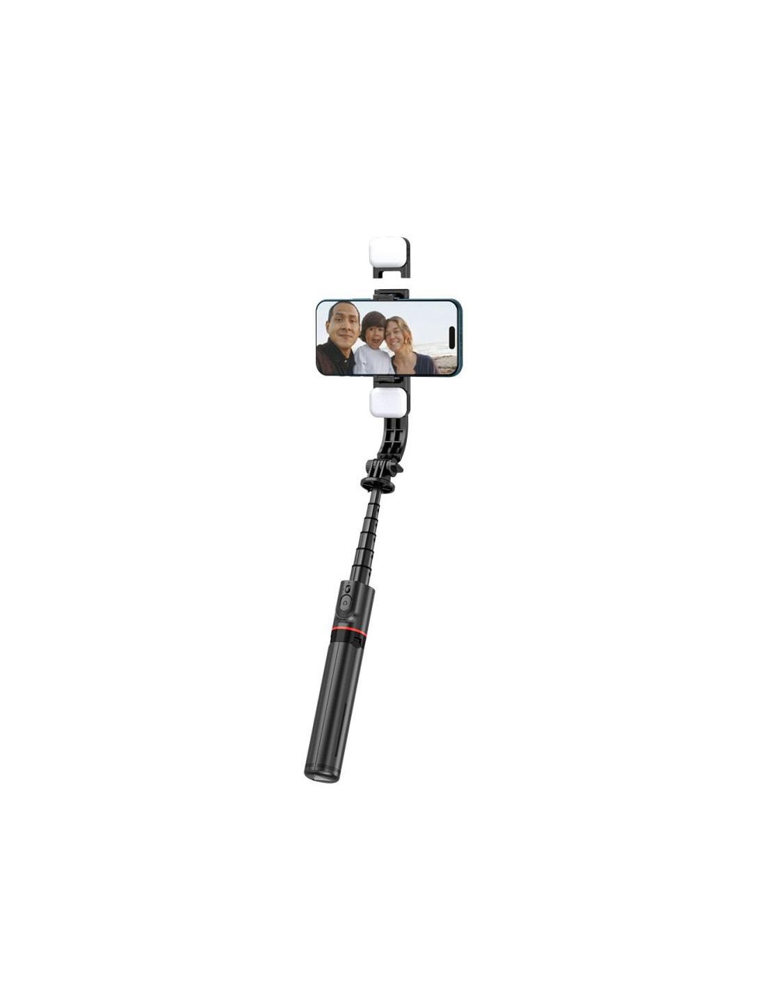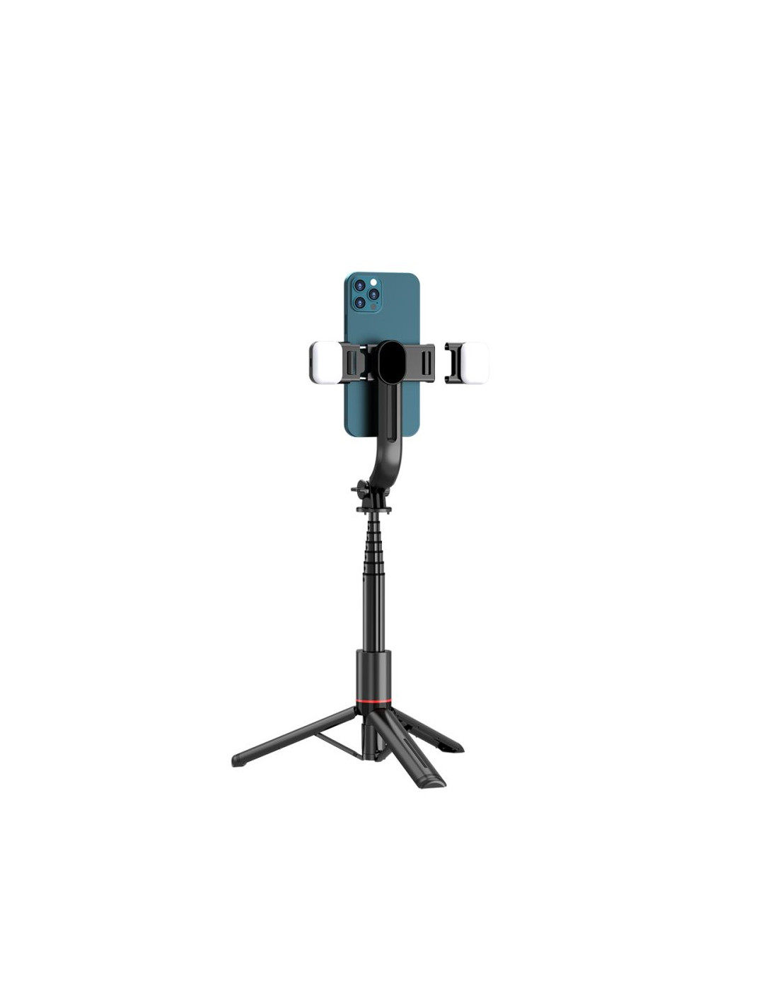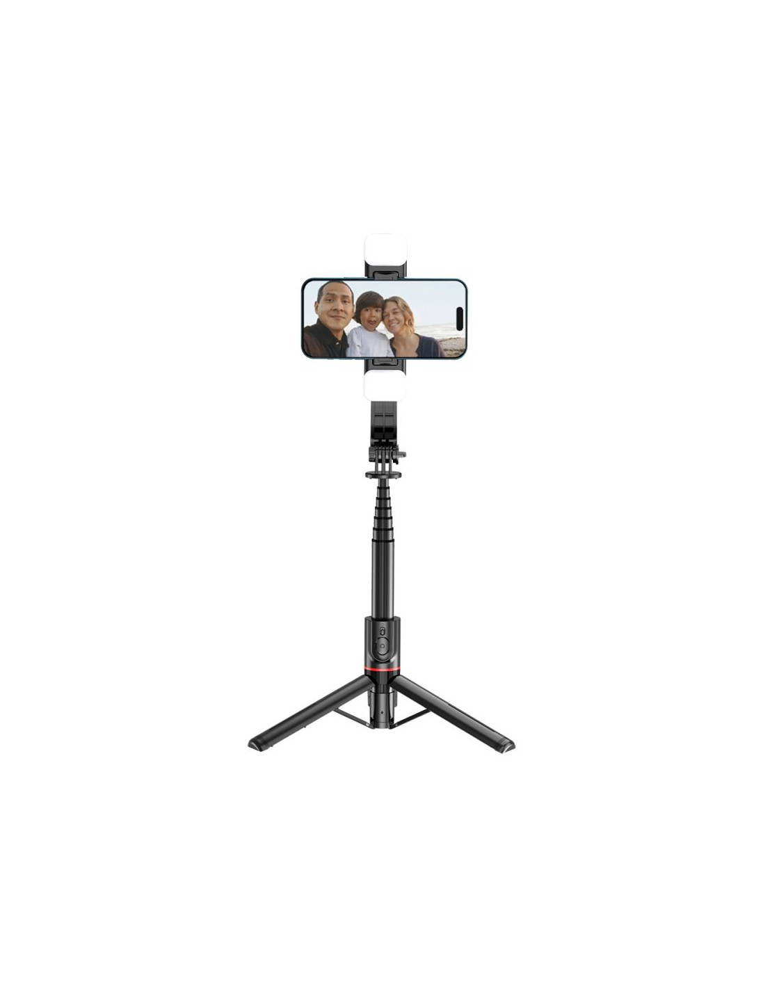 „Bluetooth“ asmenukių lazda su trikoju ir LED lempute iki 105 cm - juoda