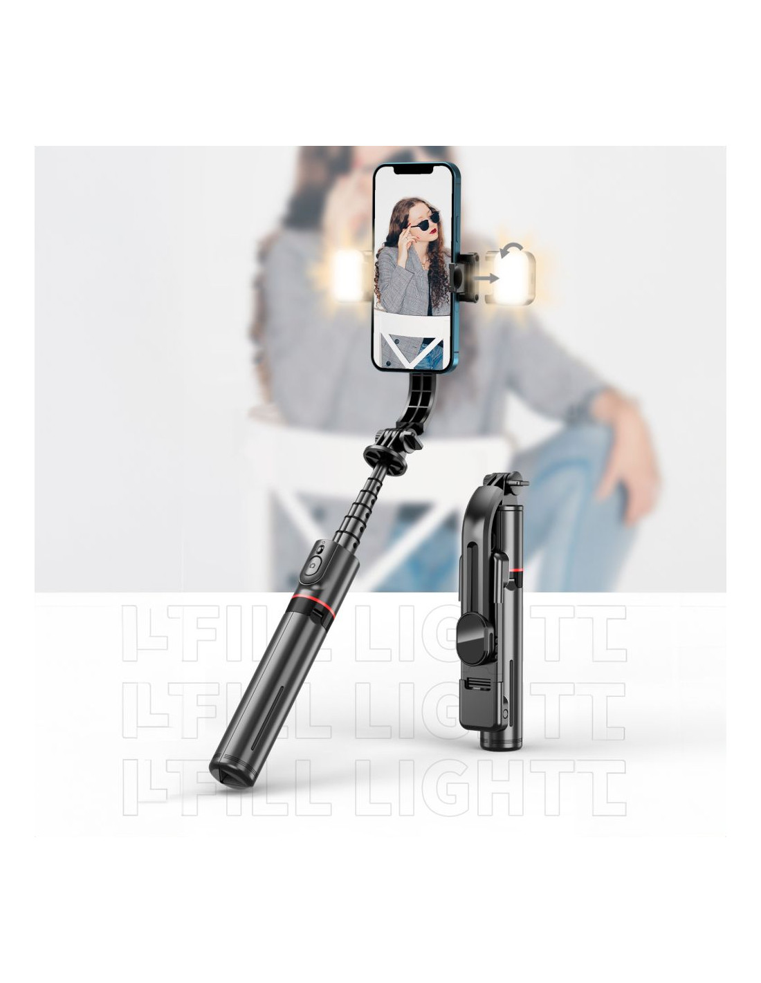 „Tech-Protect L05S Bluetooth“ asmenukių lazdelės LED lemputė – tai unikali priemonė profesionalioms nuotraukoms ir vaizdo įrašams kurti. Pagaminta iš patvarių medžiagų, ji garantuoja ilgalaikį ir patikimą veikimą. Integruotas „Bluetooth“ ryšys leidžia lazdelei belaidžiu būdu prisijungti prie telefono, todėl nereikia laidų ir valdymas supaprastinamas. L05S turi teleskopinį vamzdį, kurį galima ištiesti iki įspūdingo ilgio. Tai leidžia lengvai fotografuoti plataus kampo kadrus arba grupines nuotraukas. Be to, trikojis turi tris kojas, užtikrinančias stabilumą fotografuojant ir filmuojant. Trikojis yra praktiškas lazdelės funkcionalumo išplėtimas, leidžiantis lengvai kurti profesionalios kokybės multimedijos turinį. Tvirtai sukonstruotas išmaniojo telefono laikiklis užtikrina stabilumą fotografuojant ir filmuojant. Be to, rankenoje yra įmontuota LED lemputė, leidžianti pasirinkti šiltą arba šaltą šviesą arba abiejų derinį, taip pat šešių lygių ryškumo reguliavimas . Ši funkcija leidžia pritaikyti apšvietimą prie įvairių sąlygų, todėl galite pasiekti puikių rezultatų tiek fotografuojant, tiek filmuojant.