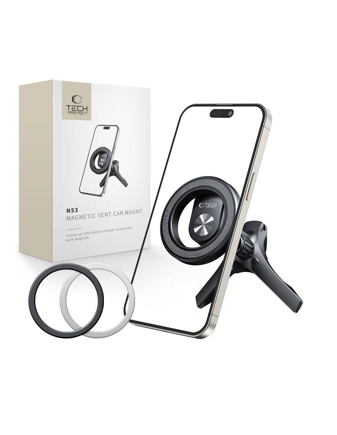 „Tech-Protect N53“ automobilio laikiklis yra modernus ir funkcionalus sprendimas, puikiai tinkantis bet kokiam automobiliui. Pagamintas iš patvaraus nailono, pluošto ir ABS plastiko, jis garantuoja ilgaamžiškumą ir atsparumą pažeidimams. Universalus dizainas tinka daugumai ventiliacijos angų, todėl yra itin praktiškas ir lengvai montuojamas. Įrengtas 17 magnetų, „N52“ užtikrina stabilų jūsų įrenginio laikymą net dinamiško vairavimo metu. Elegantiškas juodas dizainas sklandžiai dera prie bet kokio automobilio interjero, suteikdamas modernumo. „Tech-Protect N53“ leidžia patogiai ir, svarbiausia, saugiai naudotis navigacija, atsiliepti į skambučius ar leisti muziką.