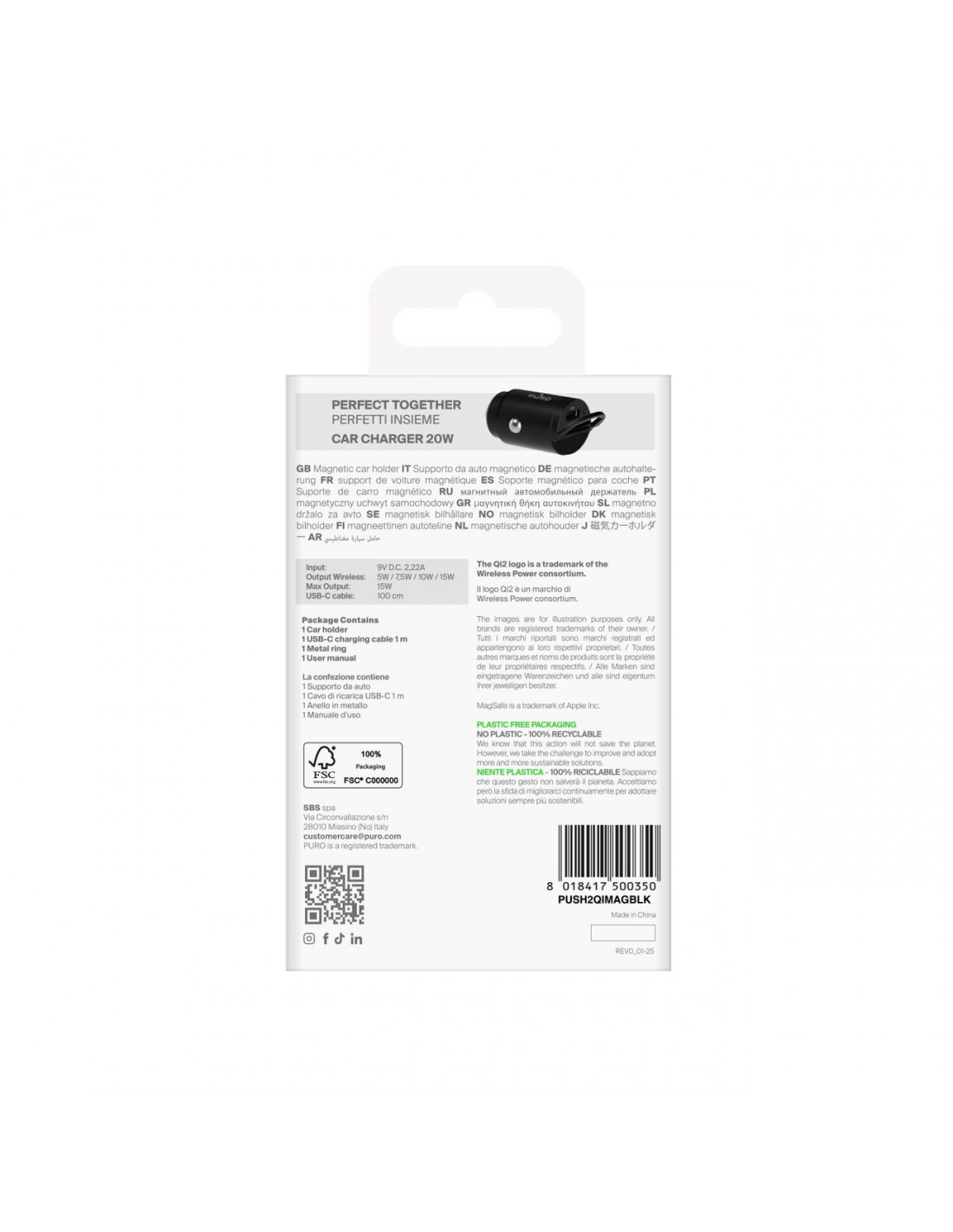 Modernus, stabilus ir funkcionalus „Puro Power Mag Holder“ automobilinis laikiklis su belaidžiu „Qi2“ įkrovimu yra puikus palydovas kiekvienoje kelionėje. Palaikantis 15 W belaidį įkrovimą ir visiškai suderinamas su „MagSafe“ technologija, jis užtikrina greitą ir patikimą išmaniojo telefono maitinimą vairuojant. Magnetinis tvirtinimas užtikrina greitą ir saugų įrenginio pritvirtinimą – tiek „iPhone“ su „MagSafe“ dėklu, tiek „Android“ išmaniojo telefono su pridedamu metaliniu žiedu. Reguliuojamas oro angos laikiklis leidžia laikikliui tikti prie įvairių prietaisų skydelių. Pridedamas patvarus, 1 metro ilgio pintas USB-C laidas ir įmontuotas laido laikiklis, kad laidas nesusipainiotų. „Puro Power Mag Holder“ sujungia modernias technologijas, patogumą ir estetiką, kad patenkintų net reikliausių vairuotojų lūkesčius.