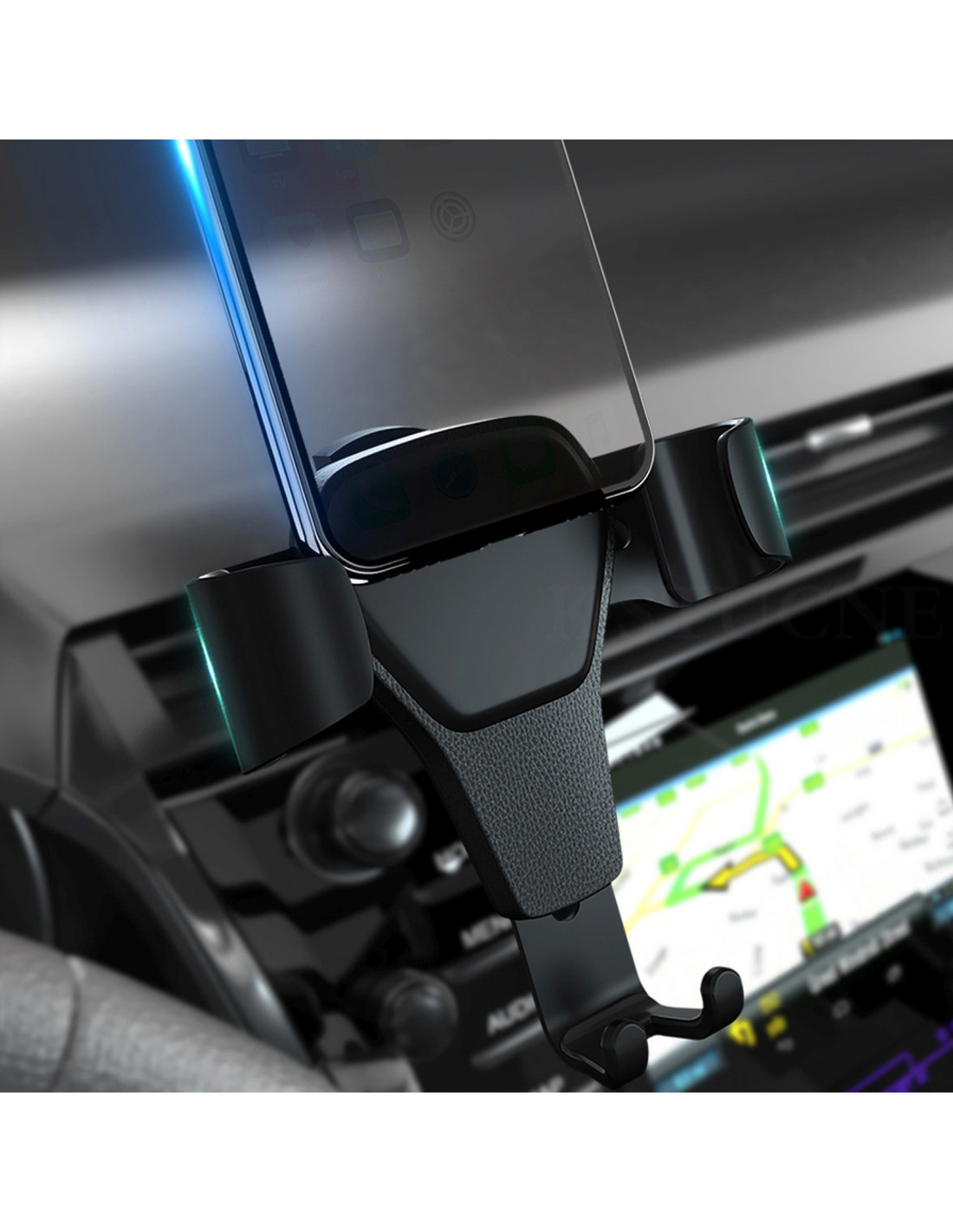 Šis gravitacijos pagrindu veikiantis automobilio laikiklis, tvirtinamas prie oro išleidimo angos, yra praktiškas sprendimas kiekvienam vairuotojui. Automatinis užrakinimo mechanizmas veikia kartu su telefono svoriu, užtikrindamas stabilumą vairuojant. Jis tinka išmaniesiems telefonams, kurių įstrižainė yra nuo 4 iki 6,5 colio. Modernus ir kompaktiškas juodas dizainas sklandžiai dera prie bet kokio automobilio salono, neblaškydamas vairuotojo dėmesio.