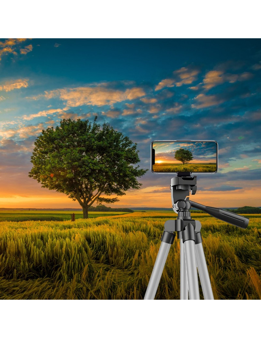 Šis universalus 4 viename trikojis yra puikus sprendimas fotografuoti ir filmuoti bet kokiomis sąlygomis – namuose, lauke ar keliaujant. Dėl reguliuojamo aukščio iki 103 cm ir „Bluetooth“ nuotolinio valdymo pulto jis leidžia patogiai fotografuoti nuotoliniu būdu. Suderinamas su dauguma išmaniųjų telefonų, veiksmo kamerų ir vaizdo kamerų.
