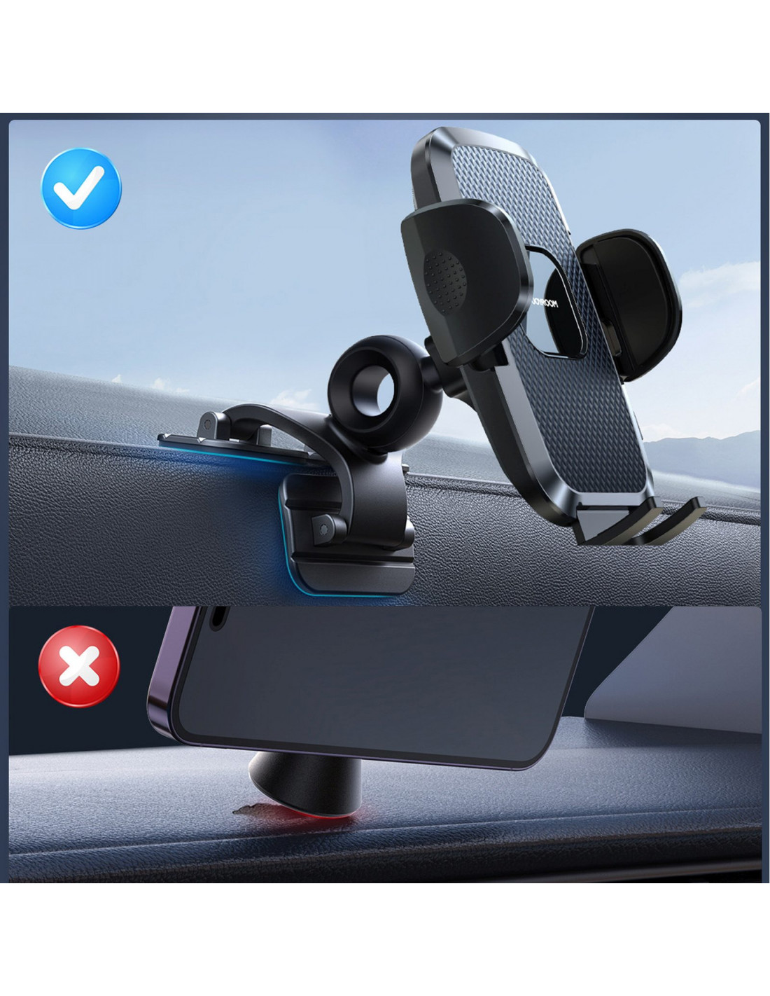 „Joyroom JR-ZS259“ automobilinis laikiklis yra praktiškas aksesuaras, jungiantis patogumą ir saugumą kasdieniam vairavimui. Dėl paprasto naudojimo tiesiog paspauskite šoninį mygtuką , kad atidarytumėte laikiklius, tada paspauskite juos abiejose telefono pusėse, kad jį tvirtai laikytumėte. Konstrukcija su trimis reguliuojamomis kojelėmis ir lanksčiomis pagalvėlėmis garantuoja stabilumą net ir ant nelygumų bei posūkių. Krumpliastiebio ir krumpliaračio laikikliai užtikrina itin saugų laikymą, o kompaktiškas dizainas neužstoja vairuotojo matymo lauko. 360° sukimasis leidžia lengvai perjungti portreto ir kraštovaizdžio režimus, o platus suderinamumas reiškia, kad laikiklis tinka daugumai 4,7–7 colių išmaniųjų telefonų ir gali būti montuojamas ant įvairių paviršių – tiek plokščių, tiek išlenktų.