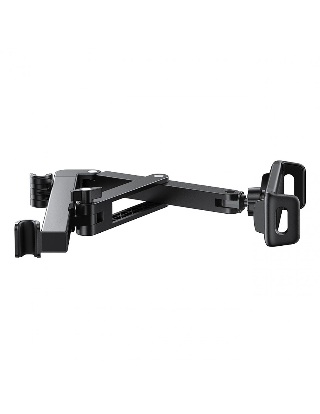 yra praktiškas ir tvirtas sprendimas keleiviams, norintiems naudotis telefonu ar planšetiniu kompiuteriu kelionės metu. Dvigubas vyris ir dviguba svirtis užtikrina išskirtinį stabilumą net ir nelygiuose keliuose. Sulankstomas ir ištraukiamas dizainas su fiksavimo rankenėle leidžia greitai pritaikyti nustatymus pagal savo poreikius. Dėl reguliuojamo atstumo tarp galvos atramos strypų laikiklis tinka daugumai automobilių modelių. Jis gali saugiai laikyti įrenginius nuo 4,7 iki 13 colių – nuo išmaniųjų telefonų iki didesnių planšetinių kompiuterių. Aukštos kokybės medžiagos, tokios kaip PC ir aliuminio lydinys, užtikrina patvarumą ir elegantišką dizainą, kuris papildo automobilio saloną.