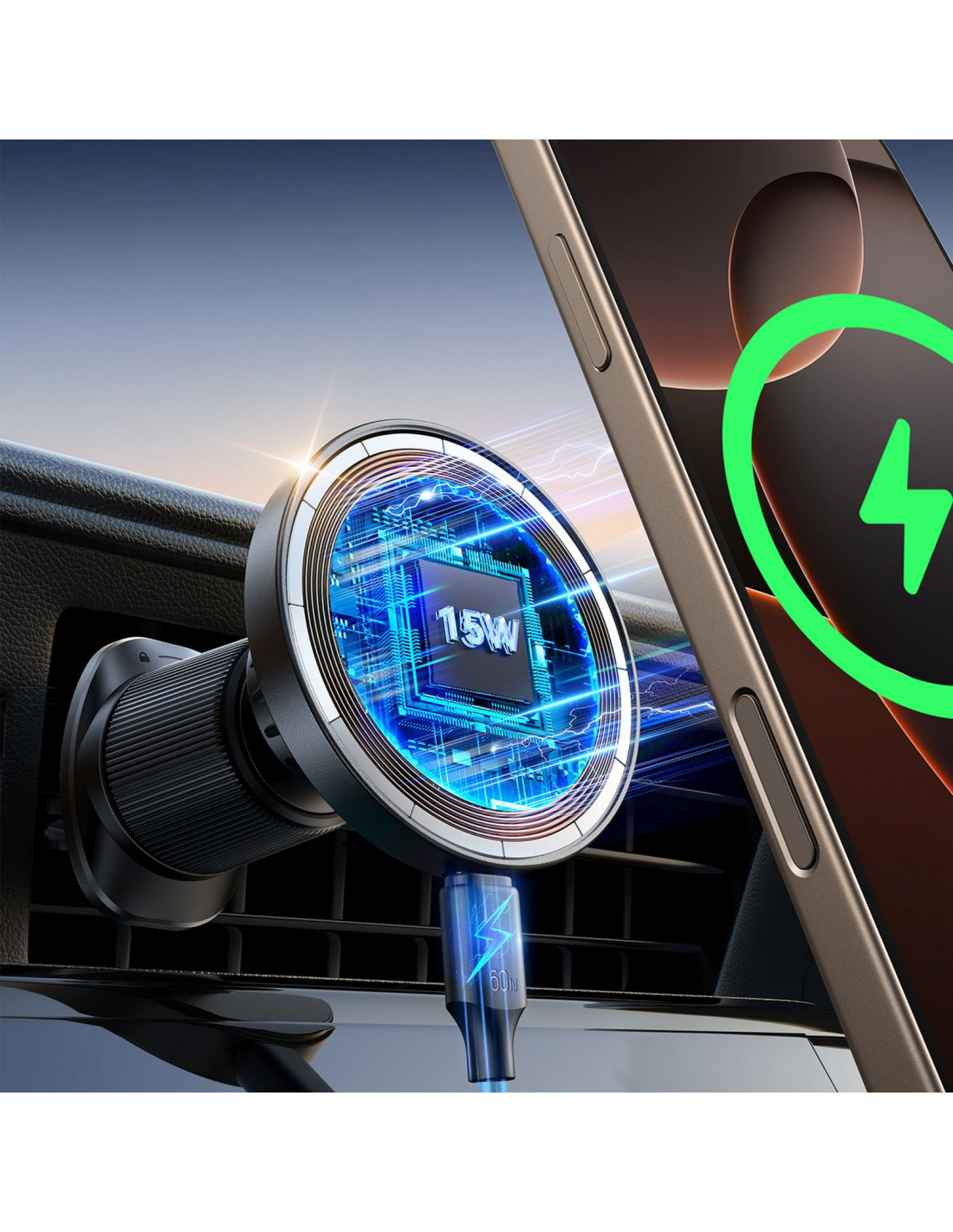 yra praktiškas automobilinis laikiklis su greitu belaidžiu įkrovimu iki 15 W. Suderinamumas su „MagSafe“ užtikrina stabilų ir saugų „iPhone“ ir kitų „Qi“ įrenginių laikiklį, kurį patogu valdyti viena ranka. Rinkinį sudaro du keičiami tvirtinimo pagrindai : tvirtas laikiklis su metaliniu kabliu oro išleidimo angai ir pagrindas su 3M lipnia juosta prietaisų skydeliui. Tiesiog įstumkite įkroviklio modulį tarp jų, kad pasirinktumėte geriausią tvirtinimo vietą. Kompaktiškas dizainas ir integruotos saugos funkcijos daro „JR-ZS502“ patikimu priedu kasdieniam vairavimui.