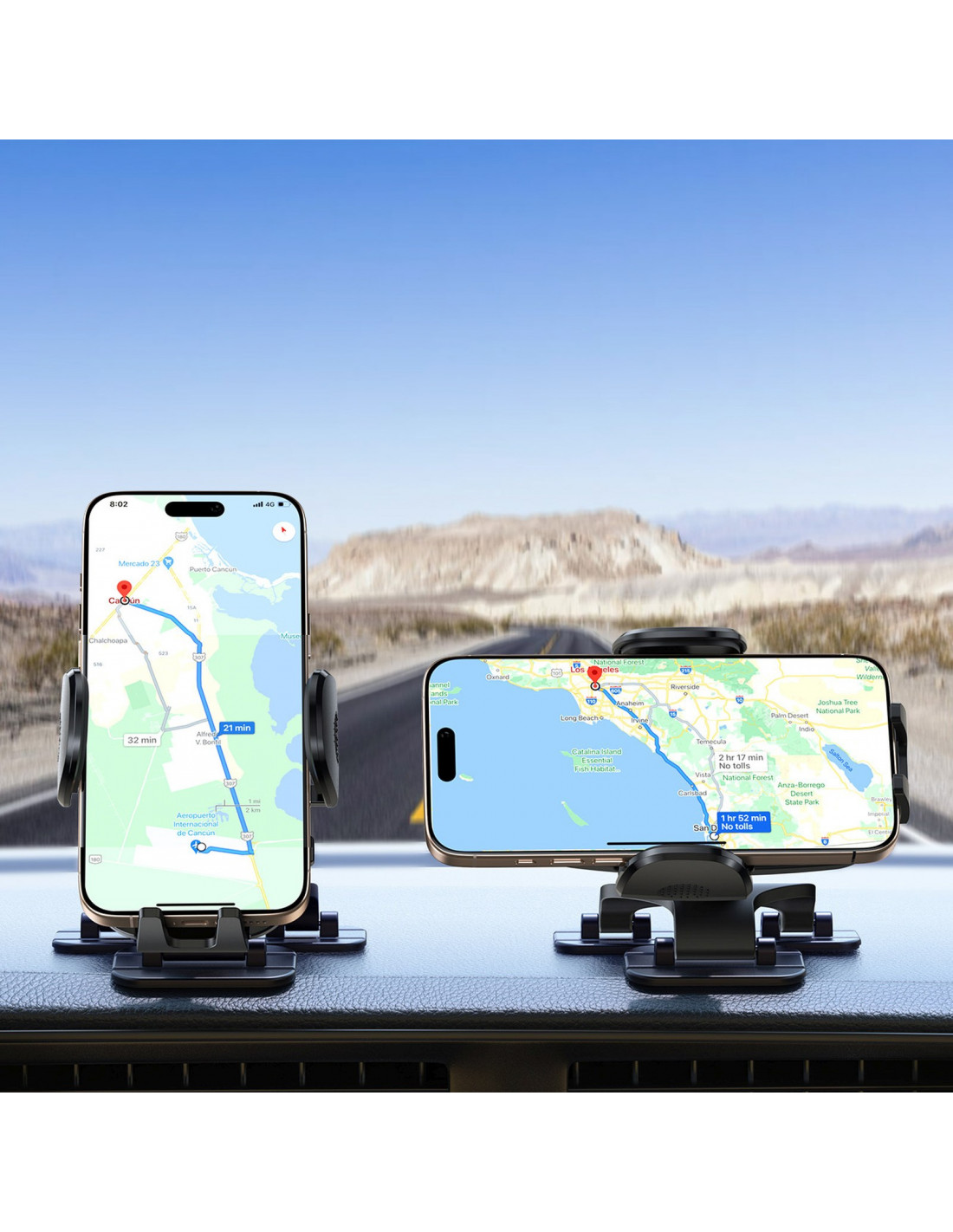 yra praktiškas aksesuaras, jungiantis patogumą ir saugumą kasdieniam vairavimui. Dėl paprasto naudojimo tiesiog paspauskite šoninį mygtuką , kad atidarytumėte laikiklius, tada paspauskite juos abiejose telefono pusėse, kad jį tvirtai laikytumėte. Konstrukcija su trimis reguliuojamomis kojelėmis ir lanksčiomis pagalvėlėmis garantuoja stabilumą net ir ant nelygumų bei posūkių. Krumpliastiebio ir krumpliaračio laikikliai užtikrina itin saugų laikymą, o kompaktiškas dizainas neužstoja vairuotojo matymo lauko. 360° sukimasis leidžia lengvai perjungti portreto ir kraštovaizdžio režimus, o platus suderinamumas reiškia, kad laikiklis tinka daugumai 4,7–7 colių išmaniųjų telefonų ir gali būti montuojamas ant įvairių paviršių – tiek plokščių, tiek išlenktų.