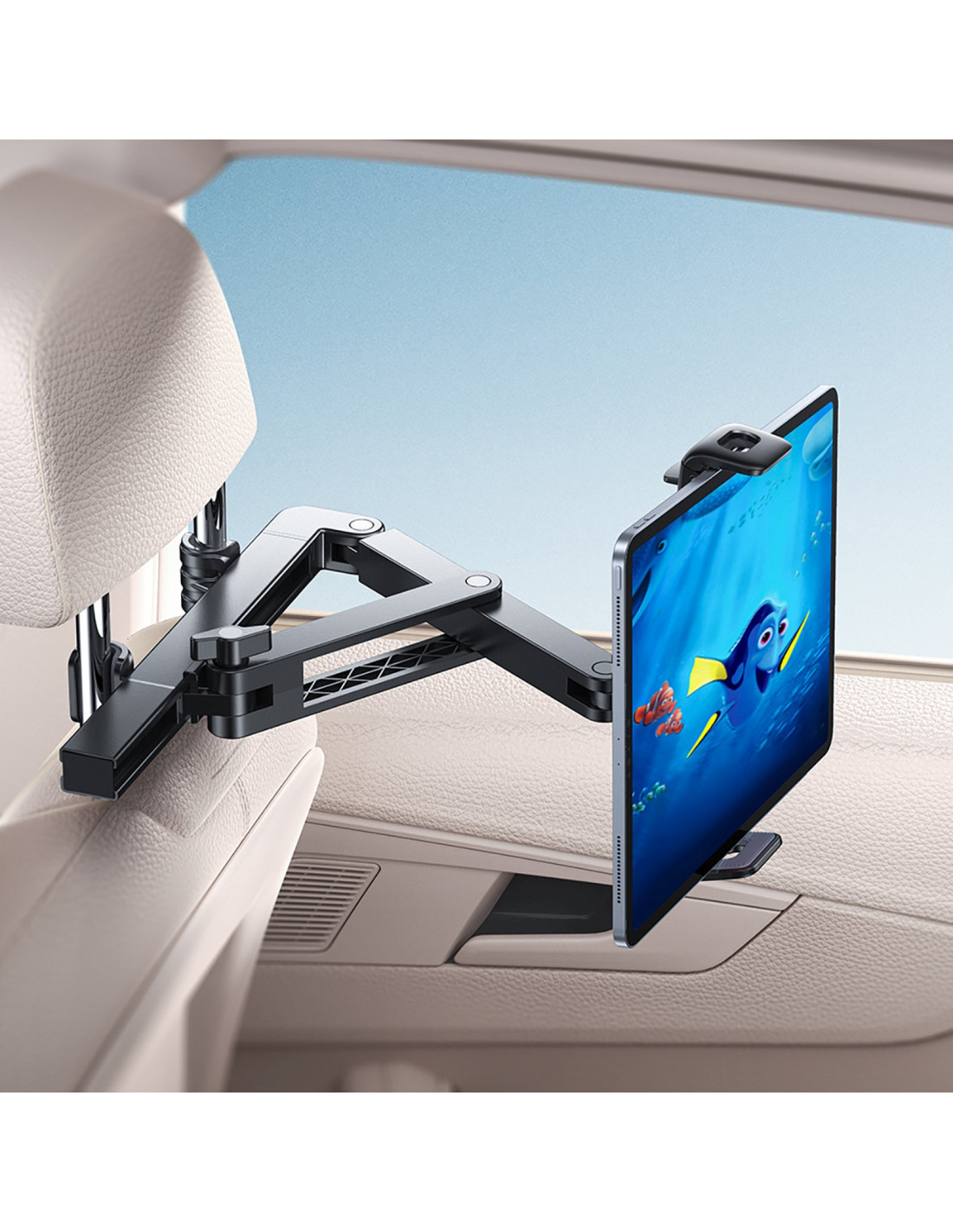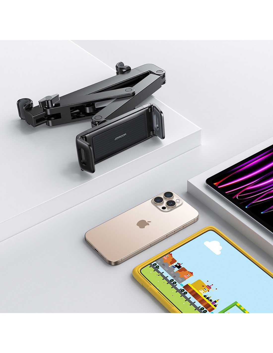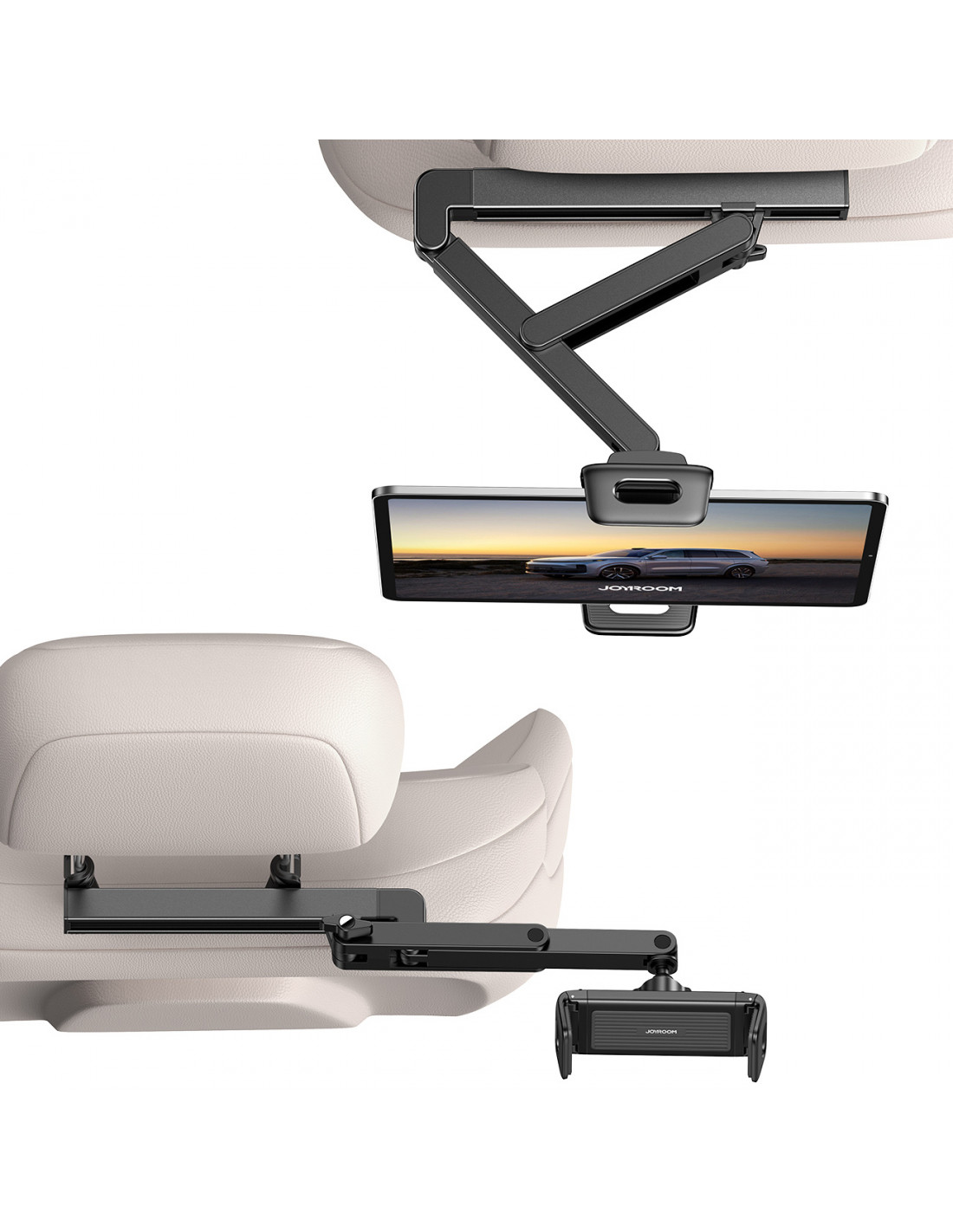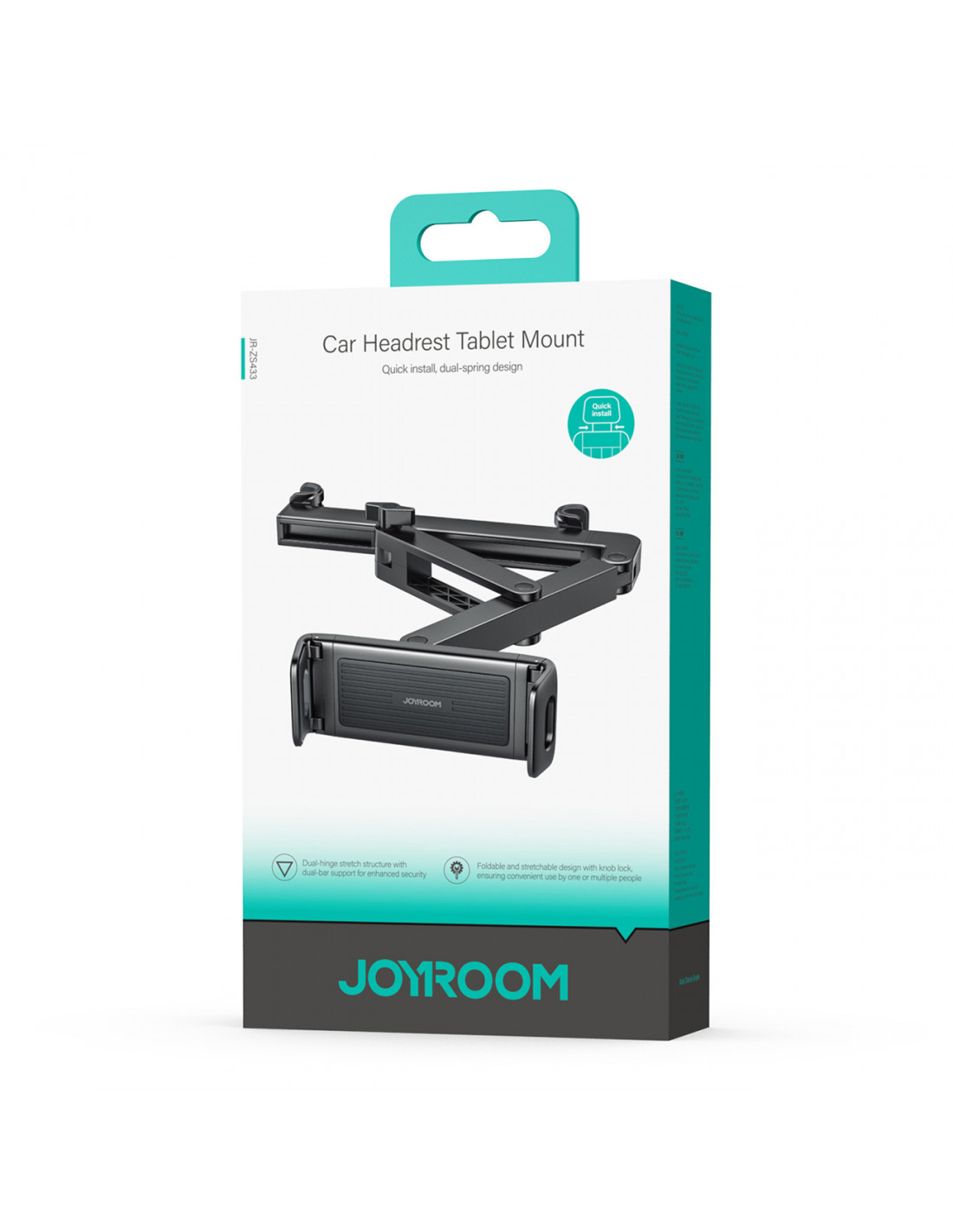 „Joyroom JR-ZS433“ automobilinis laikiklis yra praktiškas ir tvirtas sprendimas keleiviams, norintiems naudotis telefonu ar planšetiniu kompiuteriu kelionės metu. Dvigubas vyris ir dviguba svirtis užtikrina išskirtinį stabilumą net ir nelygiuose keliuose. Sulankstomas ir ištraukiamas dizainas su fiksavimo rankenėle leidžia greitai pritaikyti nustatymus pagal savo poreikius. Dėl reguliuojamo atstumo tarp galvos atramos strypų laikiklis tinka daugumai automobilių modelių. Jis gali saugiai laikyti įrenginius nuo 4,7 iki 13 colių – nuo išmaniųjų telefonų iki didesnių planšetinių kompiuterių. Aukštos kokybės medžiagos, tokios kaip PC ir aliuminio lydinys, užtikrina patvarumą ir elegantišką dizainą, kuris papildo automobilio saloną.