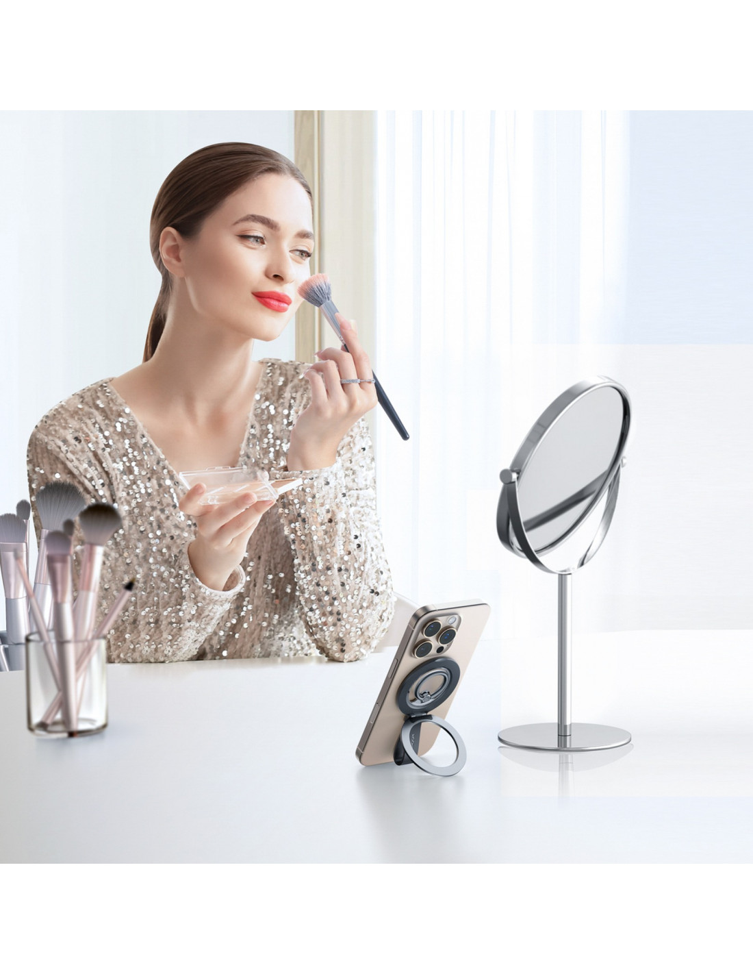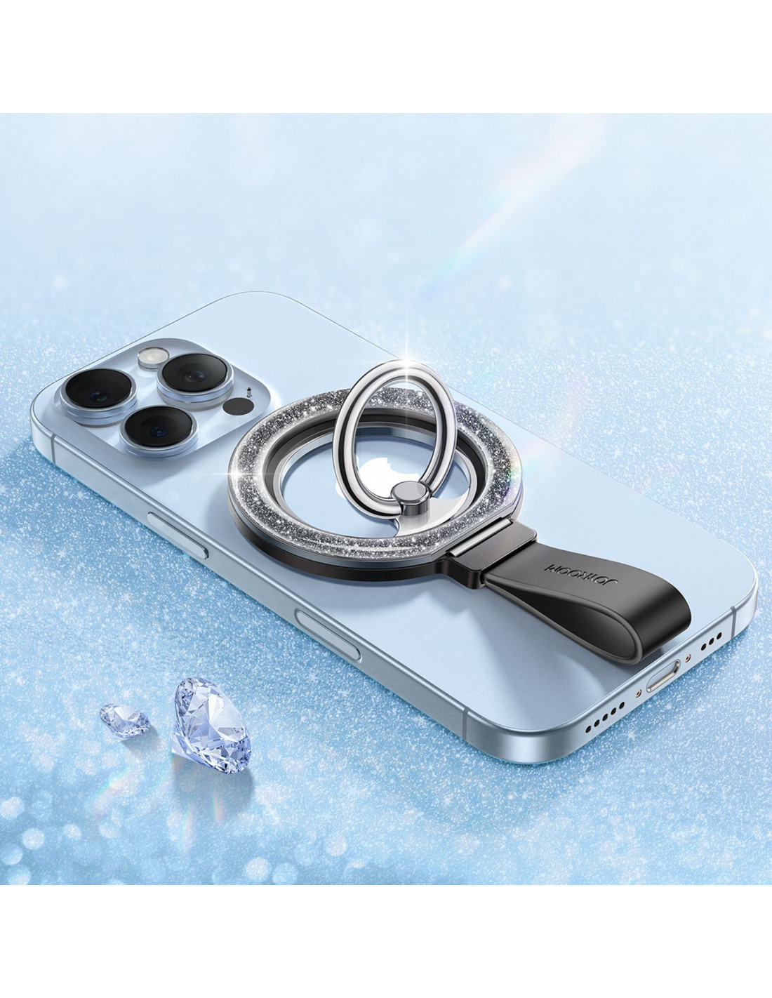 „Joyroom JR-ZS425“ laikiklis yra stilingas ir funkcionalus aksesuaras, kuriame derinamas madingas dizainas ir praktiški sprendimai. Blizgantis, blizgantis kraštas suteikia išmaniajam telefonui elegantišką išvaizdą ir užtikrina patogų bei saugų laikymą. Dėl stiprių N56 magnetų laikiklis akimirksniu prisitvirtina prie telefonų ir magnetinių dėklų su „MagSafe“ technologija, o pridedamas metalinis žiedas leidžia jį naudoti ir su kitais modeliais. 360 laipsnių sukimosi žiedas ir 120 laipsnių sulankstomas stovas leidžia dar patogiau naudotis telefonu – tiek vertikaliai, tiek horizontaliai. Šis praktiškas aksesuaras supaprastina kasdienį telefono naudojimą ir suteikia unikalumo.