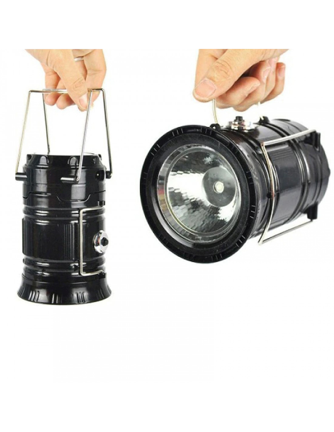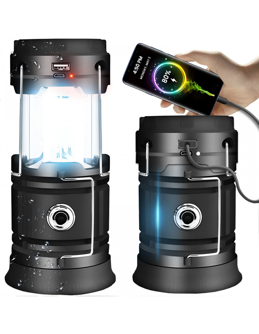 Įkraunamas saulės energija varomas turistinis žibintas su išorine baterija, sulankstomas, 6 LED