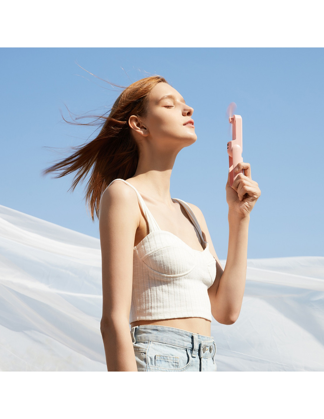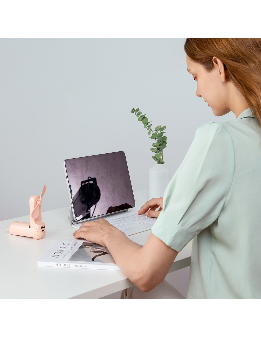 – lengvas, sulankstomas nešiojamas ventiliatorius, puikiai tinkantis kelionėms, darbui ar pasivaikščiojimams. Trys funkcijos viename įrenginyje – ventiliatorius, žibintuvėlis ir išorinė baterija – yra universalus palydovas kasdienei veiklai. Integruota 2000 mAh baterija užtikrina iki 21 valandos veikimo laiką, o du oro srauto nustatymai leidžia reguliuoti vėsinimą pagal esamus poreikius. Rožinė spalva pabrėžia draugišką, moterišką dizainą.