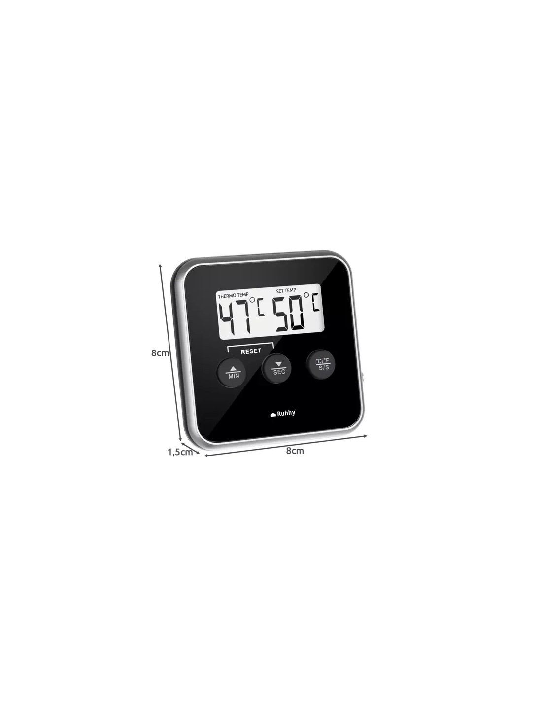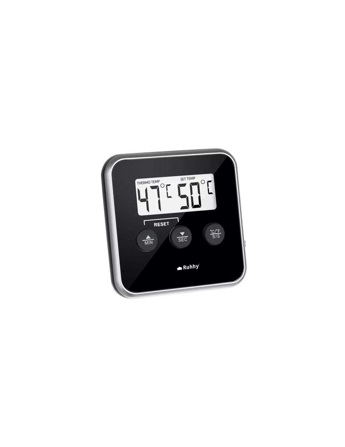 Termometras turi zondą, pagamintą iš aukščiausios kokybės nerūdijančio plieno, labai atsparaus įbrėžimams, įlenkimams ar kitiems mechaniniams pažeidimams, bet ir aukštai temperatūrai. Termometro korpuse yra intuityvus valdymo pultas. Prietaisas turi užrakinimo laiko funkciją – skirtą nuolatiniam temperatūros stebėjimui ir laikmatį su akustiniu signalu. Veikia diapazone nuo -20 iki 250 laipsnių Celsijaus su vienu žingsniu. Karščiui atsparus nerūdijančio plieno zondas yra ilgo ir patogaus laido gale.
