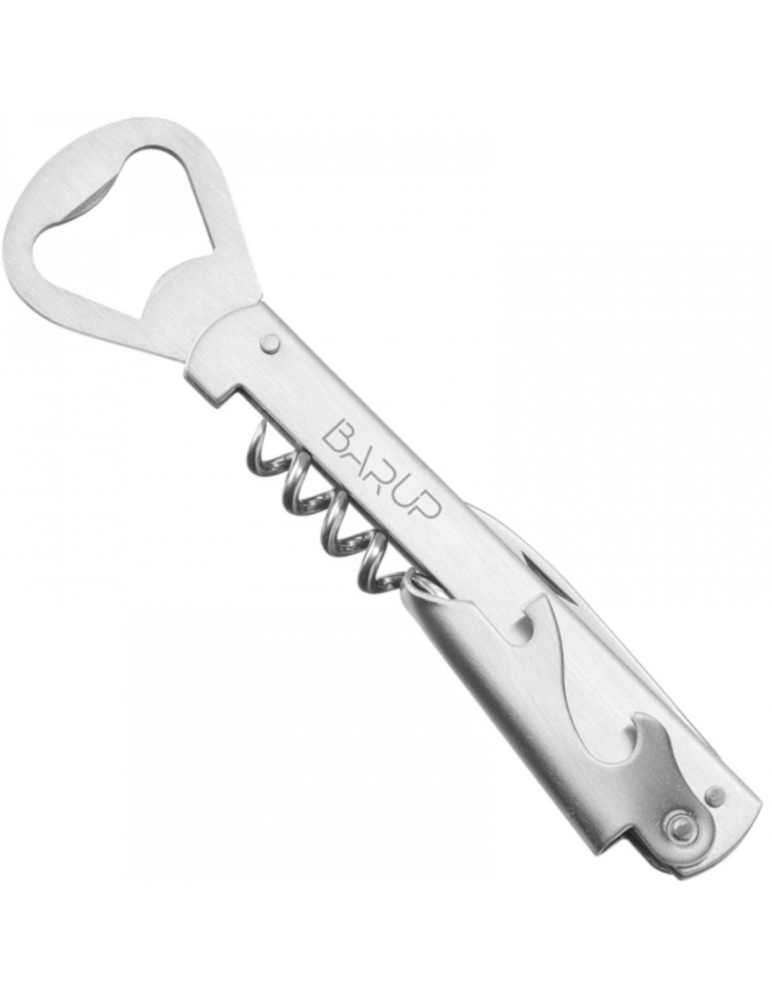 „BarUP“ padavėjo butelių atidarytuvas yra patvarus, daugiafunkcis įrankis, pagamintas iš nerūdijančio plieno . Jis turi keturias integruotas funkcijas , įskaitant folijos pjaustytuvą, klasikinį kamščiatraukį ir butelių atidarytuvą, todėl yra būtinas padavėjo atributas.