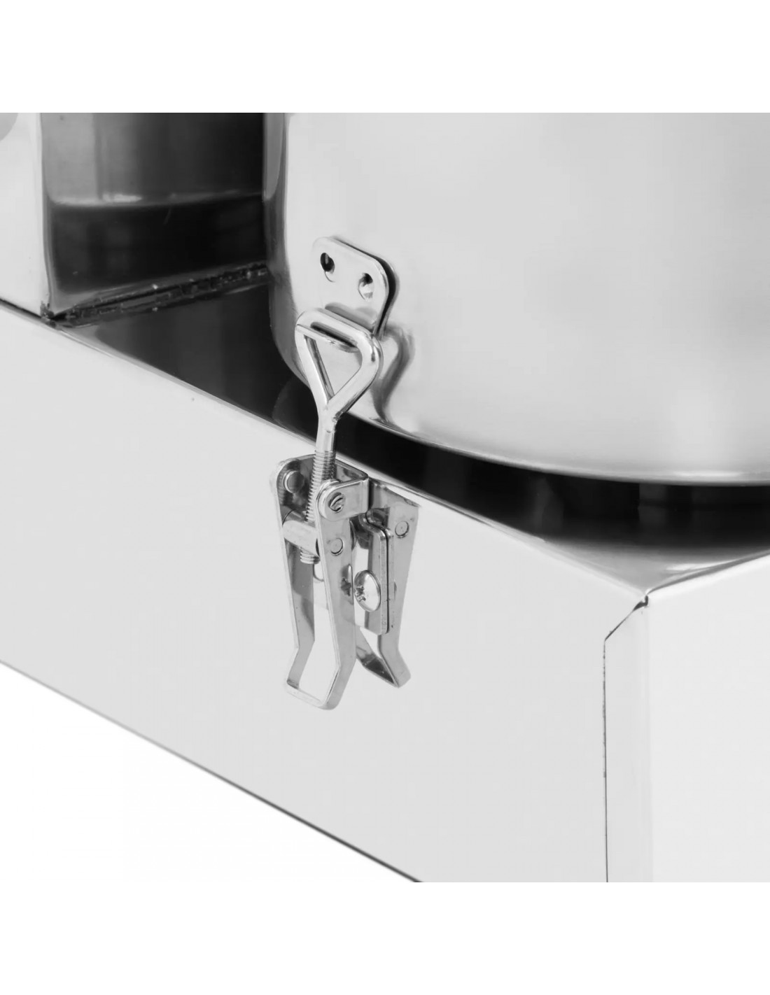 Šis „Royal Catering“ maisto smulkintuvas leidžia jums susmulkinti arba susmulkinti daržoves, mėsą ar žoleles, kad greitai ir efektyviai paruoštumėte sriubas, paštetus ar panašius patiekalus. Jo galia yra 1200 W , o greitis – 1600–3200 aps./min . Dubuo pagamintas iš patvaraus nerūdijančio plieno ir pasižymi aukštos kokybės apdaila. Lygius paviršius lengva valyti. Smulkinimo peilis patikimai susmulkina visus maisto produktus dideliu greičiu. Ašmenų kokybė visada garantuoja tobulą pjovimą, neigiamai nepaveikiant perdirbamo produkto. Nuimamas indas yra 6 litrų talpos ir gali apdoroti iki 4,8 litro maisto. Plastikinis dangtelis apsaugo nuo taškymosi veikimo metu. Prietaisas valdomas mygtuku. Keturios neslystančios guminės kojelės užtikrina pakankamą stabilumą esant maksimaliam greičiui. Dėl saugumo sumetimų peiliai juda tik tada, kai indas yra tvirtai pritvirtintas prie prietaiso.