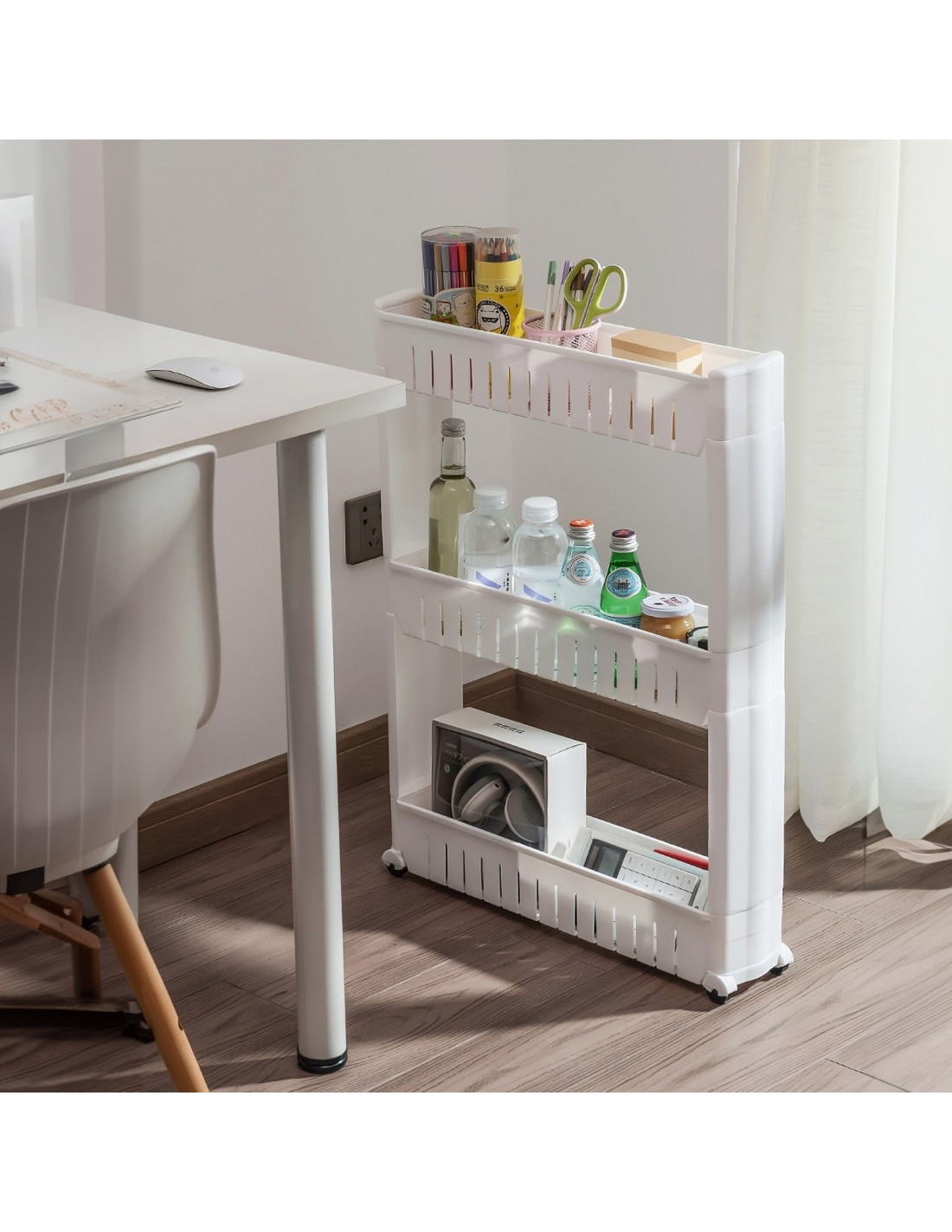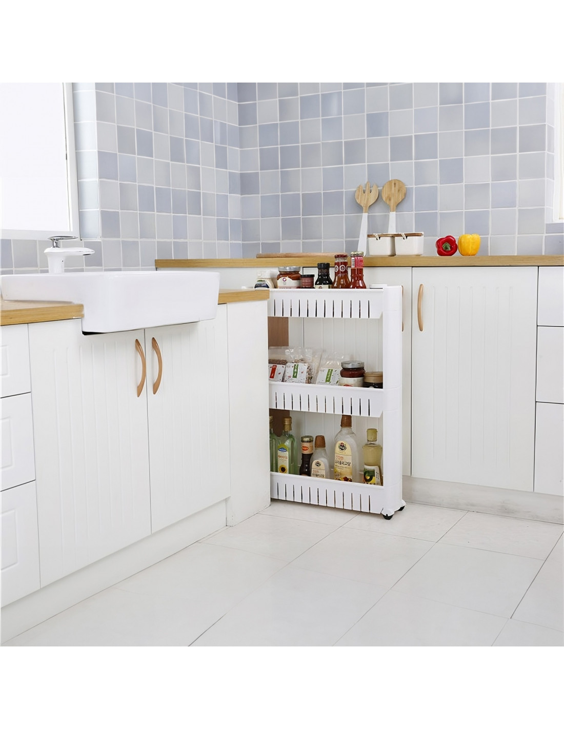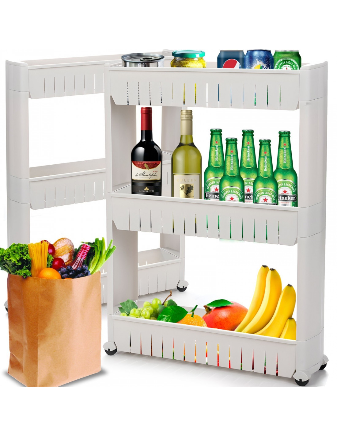 - - Daugiafunkcinė ir mobili spintelė su trimis lentynomis ir keturiais ratukais lengvam judėjimui