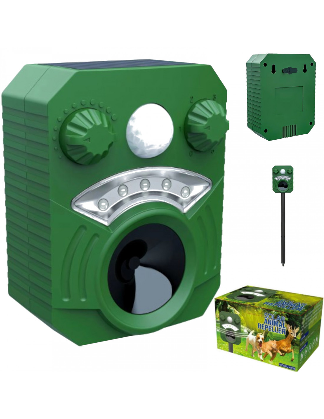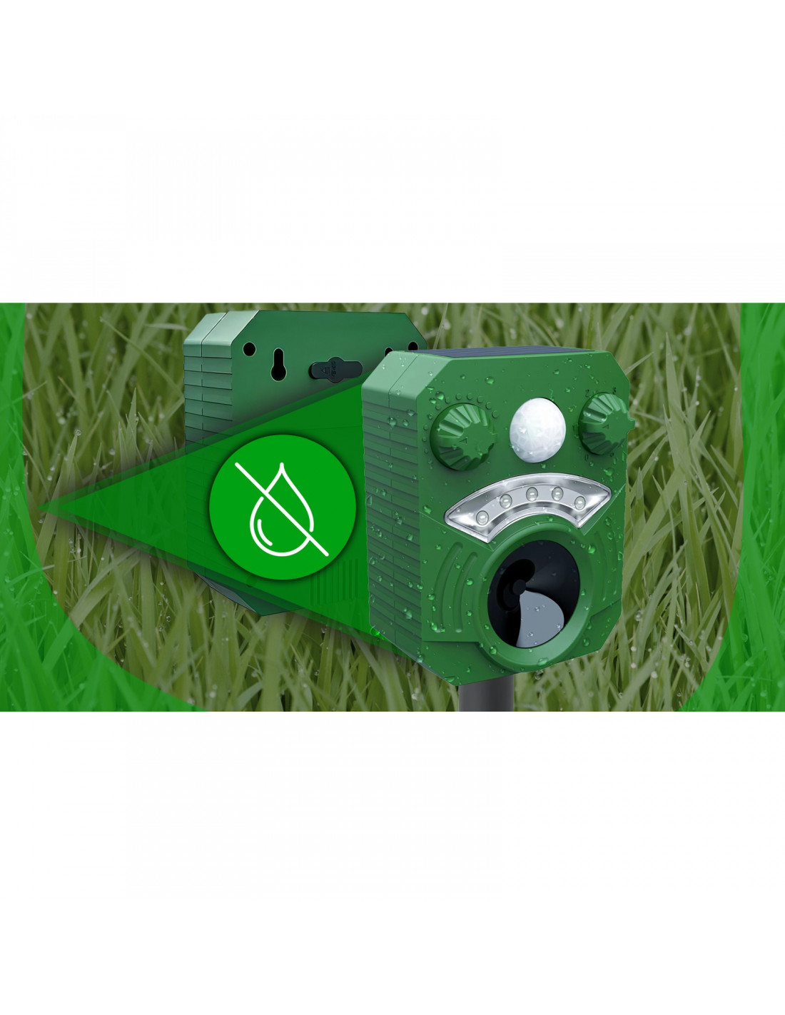 „Retoo ER1123“ saulės energija varomas ultragarsinis šviesos repelentas yra efektyvus ir humaniškas sprendimas atbaidyti laukinius gyvūnus ir graužikus. Įrenginys veikia naudodamas PIR judesio jutiklį ir kintamo dažnio ultragarsą , užtikrindamas apsaugą nenaudojant cheminių medžiagų. Dėl saulės energijos ir IP44 atsparumo vandeniui, jis tinka bet kokioms oro sąlygoms – sode, sklype ar aplink namą.