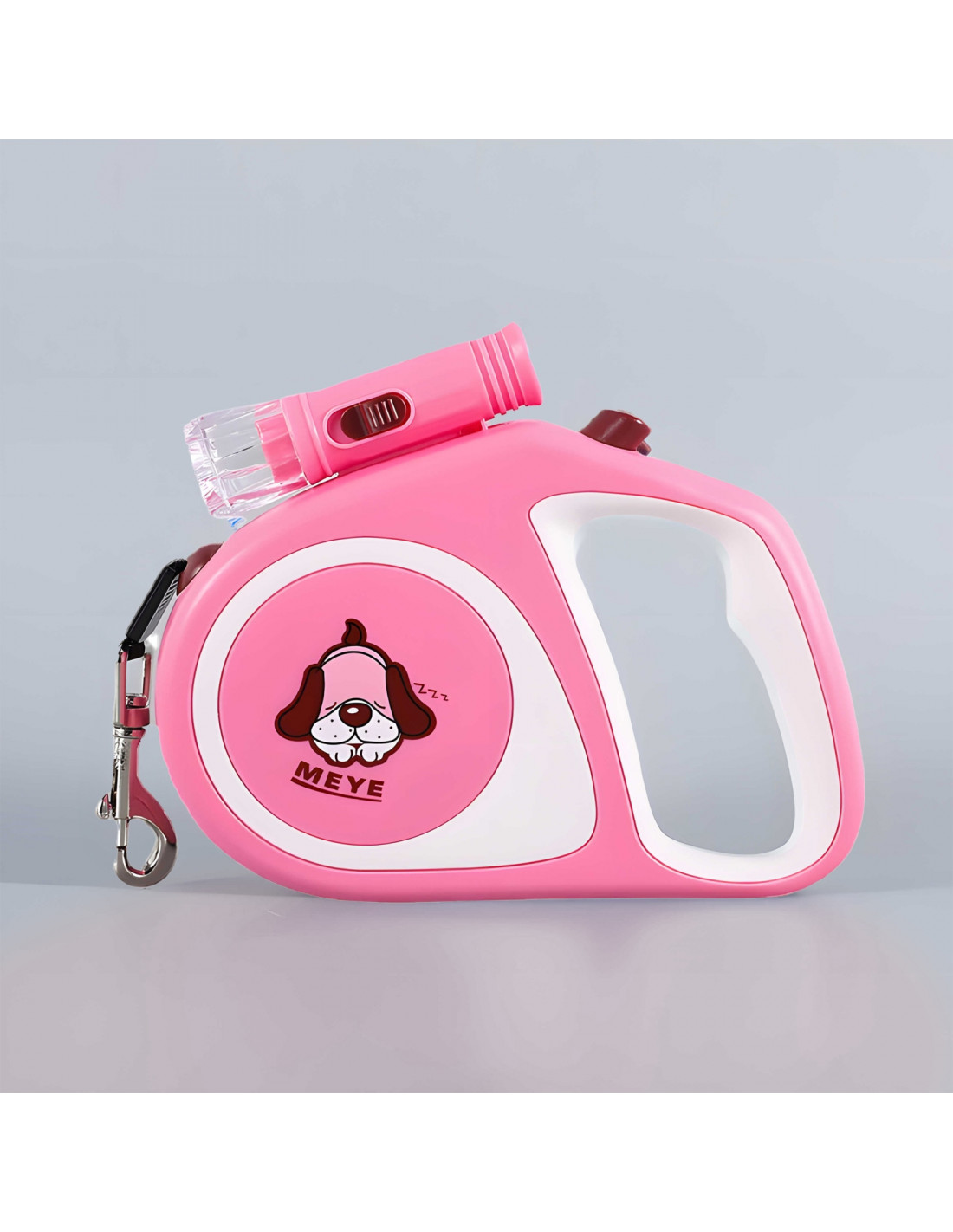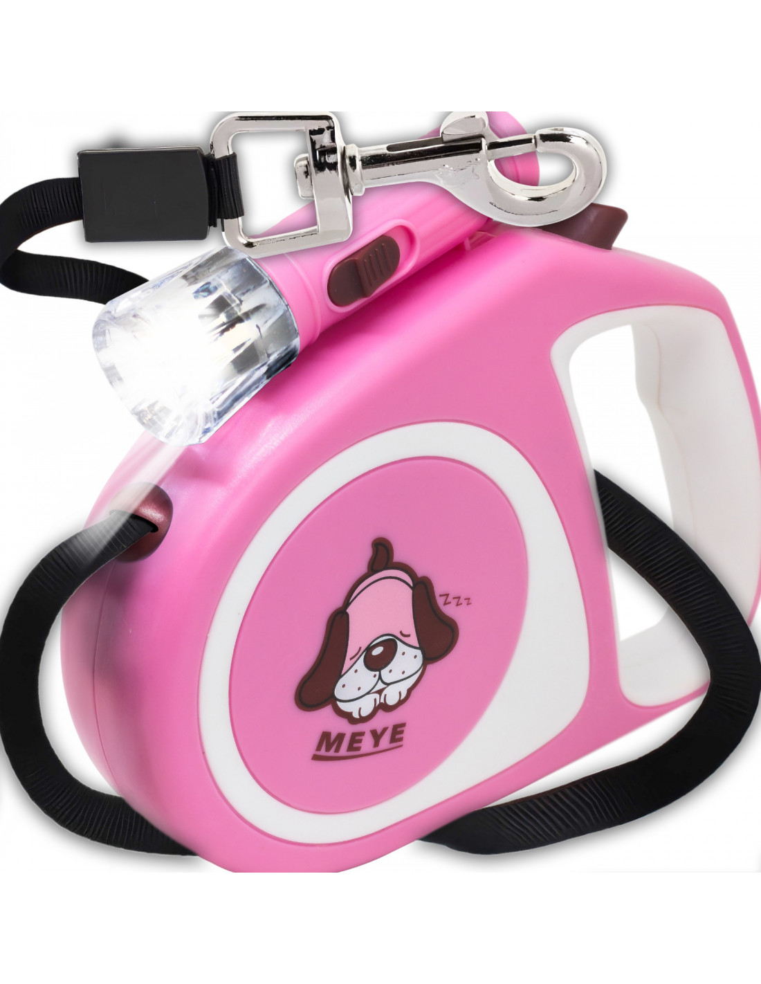 Automatinis ištraukiamas pavadėlis šunims ir katėms su spyna ir LED žibintuvėliu iki 15 kg, 5 m - rožinis