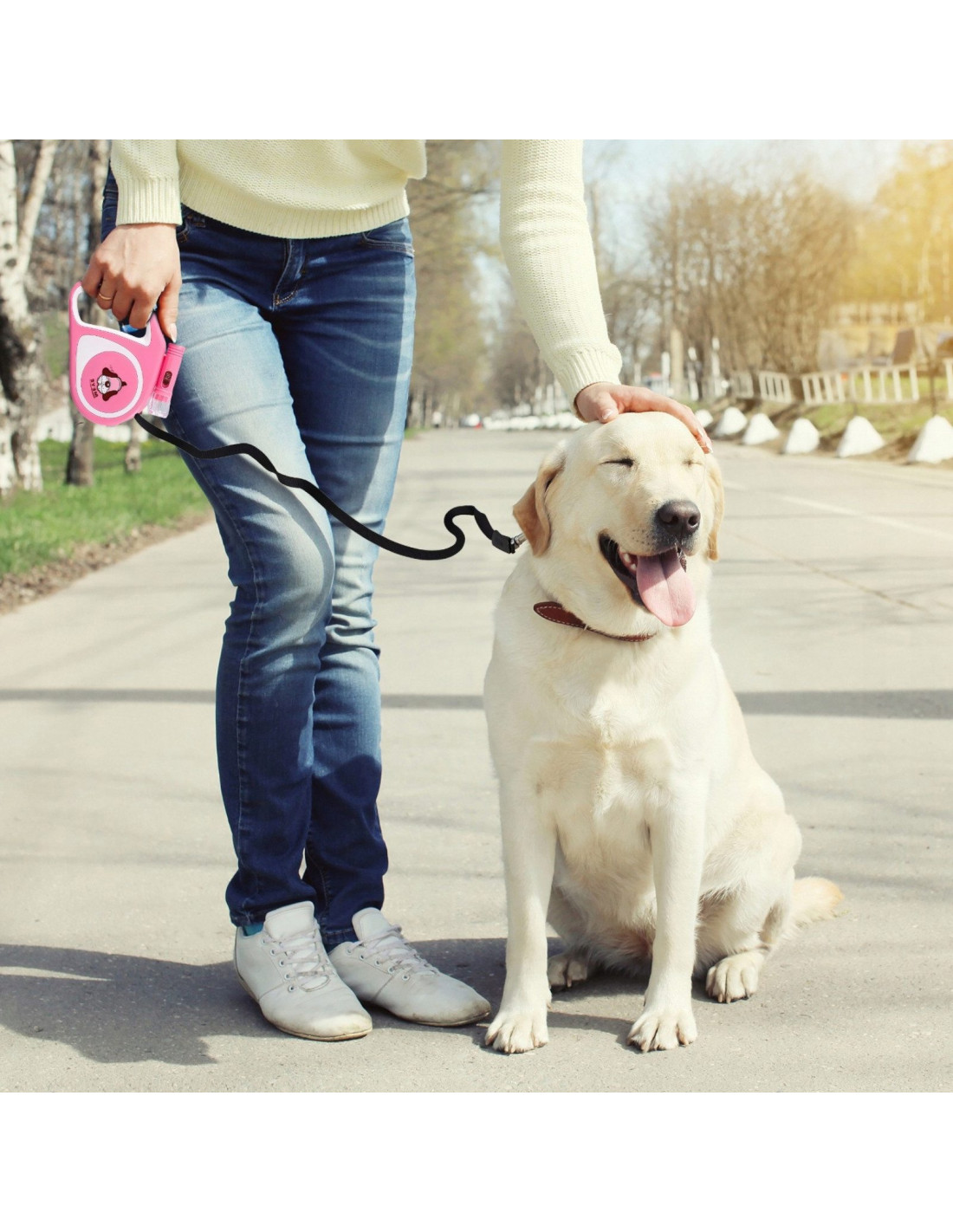 RETOO ištraukiamas pavadėlis šunims ir katėms yra patvarus gaminys, skirtas augintiniams iki 15 kg . 5 metrų ilgio pavadėlis pagamintas iš tvirto austinio tinklo ir turi patikimą automatinį įtraukimo ir fiksavimo mechanizmą, užtikrinantį visišką augintinio kontrolę pasivaikščiojimų metu. Integruotas LED žibintuvėlis padidina saugumą ir matomumą esant prastam apšvietimui.