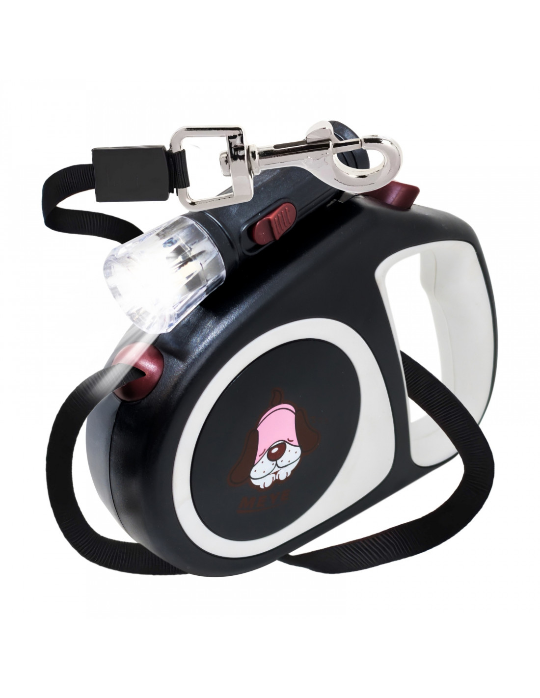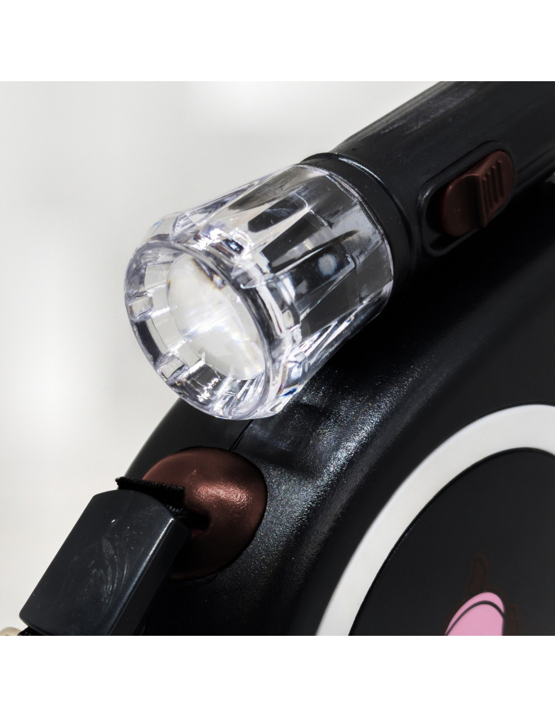Automatinis ištraukiamas pavadėlis šunims ir katėms su spyna ir LED žibintuvėliu iki 15 kg, 5 m - juodas
