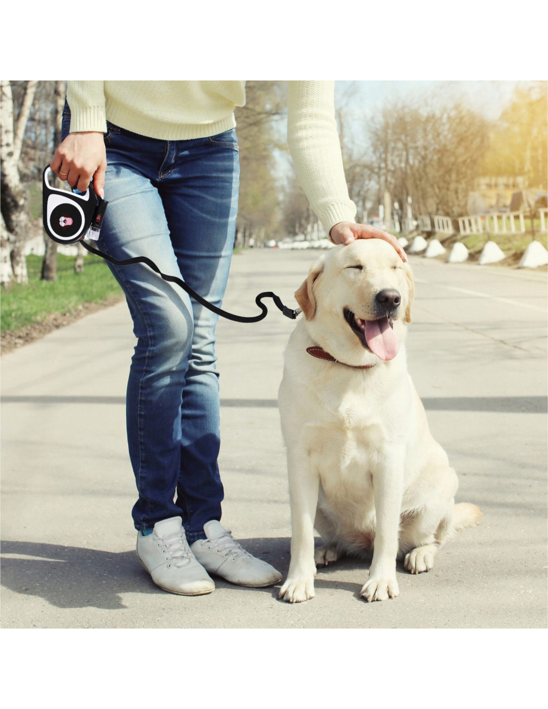 RETOO ištraukiamas pavadėlis šunims ir katėms yra patvarus , 5 metrų ilgio gaminys, skirtas augintiniams iki 15 kg svorio. Įrengtas automatinis ištraukimo ir fiksavimo mechanizmai, leidžia sklandžiai ištraukti pavadėlį ir sustoti pasirinktame ilgyje, užtikrinant visišką augintinio kontrolę pasivaikščiojimų metu. Integruotas LED žibintuvėlis padidina matomumą ir saugumą esant prastam apšvietimui.